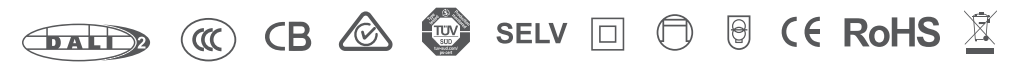 (Push DIM) LED driver with 0.1~100% dimming range. Safety features include short-circuit, over-voltage, and overheat protection, with an auto recovery feature. Achieves IEEE 1789 flicker-free high-frequency exemption level.