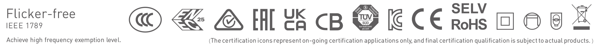 LTECH 24vdc constant voltage mains dimmable (Leading edge (Triac), Trailing edge (ELV) phase-cut and Push DIM) LED driver with 0.1~100% dimming range. Safety features include short-circuit, over-voltage, and overheat protection. Achieves IEEE 1789 flicker-free high-frequency exemption level.