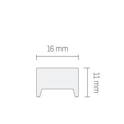 Manufactured from extruded anodised aluminium, with a silver finish, as standard. Custom powder-coated options (white/black/RAL) are also available. The low profile (11mm), combined with a transparent cover and industry-leading Nichia LEDs, produces a highly efficient (85% LOR) luminaire. Perfect for cove (indirect) lighting applications.