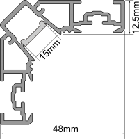 A trimless recess mounted linear LED luminaire manufactured from extruded aluminium and finished in matt white with an opal diffuser. Designed for installation within internal 90° corner junctions using single layer 12.5mm Gypsum plasterboard.