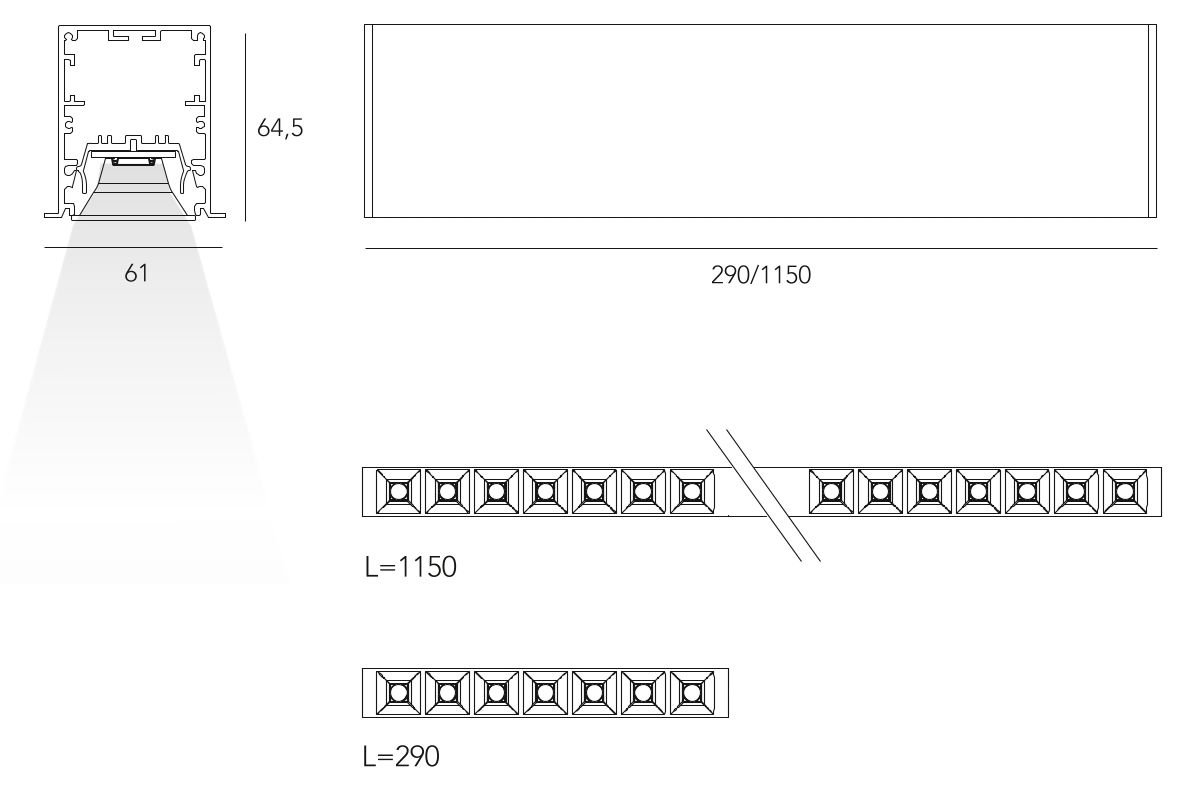 Trim fitting designed for the Spectrum light element. Suitable for offices, retail or any other general lighting. Flow control starts from the Dark Light concept with UGR <19.