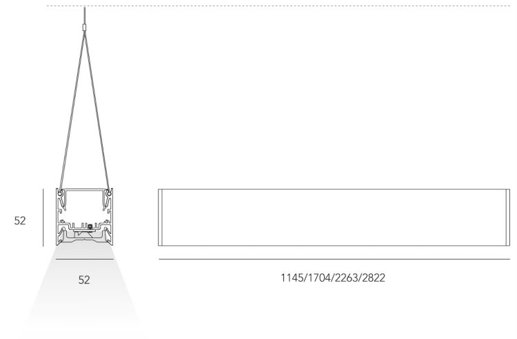 Suspended luminaire with different optics to adapt to any environment and guarantee excellent visual comfort. High efficiency 93%.