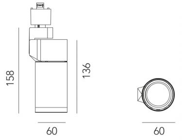 Maximum installation flexibility on three-phase lighting track, suitable for environments such as art galleries, shops, museums.