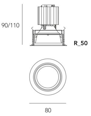 The light source is installed in a conical recessed ring that guarantees perfect control of the anti-glare light flow.