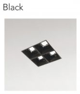 Trimless downlight for plasterboard, square shape equipped with high-power LEDs, plastic lens to meet control and luminance requirements in environments with VDTs.