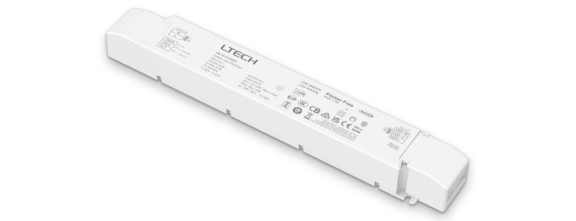 LTECH 24vdc constant voltage DALI-2 (DT8) dimmable driver with 2 independent output channels for tunable white colour temperature control and brightness dimming.