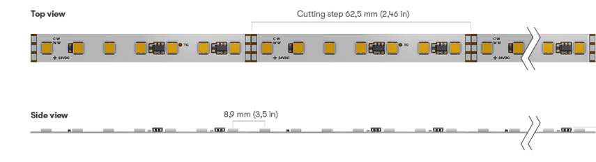 High quality Nichia LEDs deliver superior performance, whilst single bin selection and 3-step MacAdam colour consistency ensure imperceptible colour and brightness variation. A thermally conductive adhesive tape guarantees perfect heat transfer to the profile. Designed for professional interior lighting applications where stable, consistent and reliable performance is required.