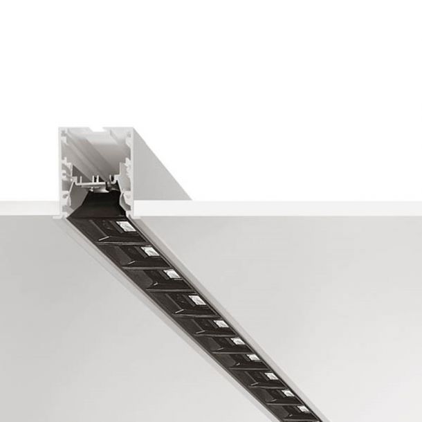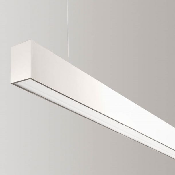 65 x 61mm aluminum profile, complete with opal diffuser (efficiency 64%) transparent prismized (efficiency 92%), integrated power supply. Suspension mounting.