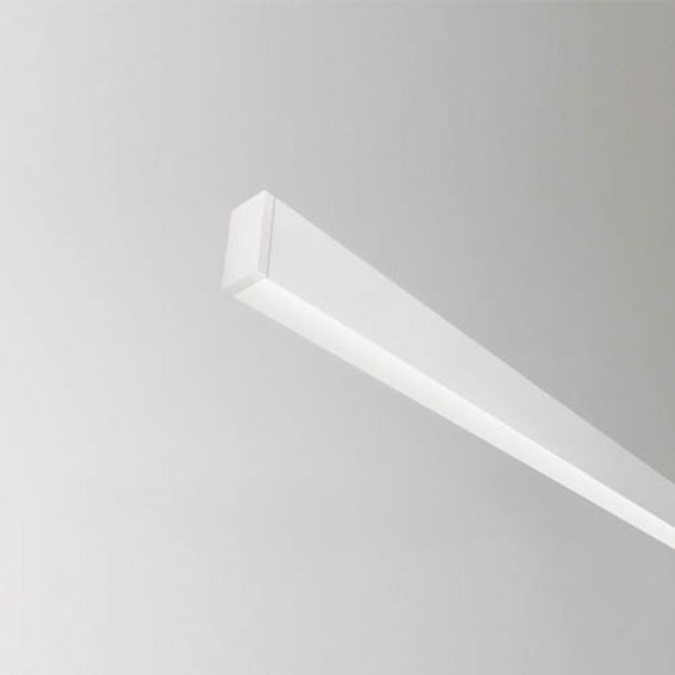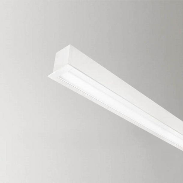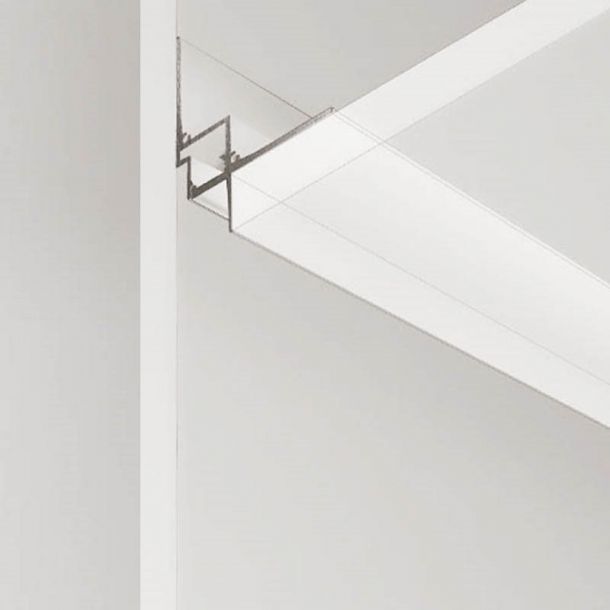 Trimless modular system. Available in white finish. The polycarbonate diffuser is flush with the lower edge (not retracted).
