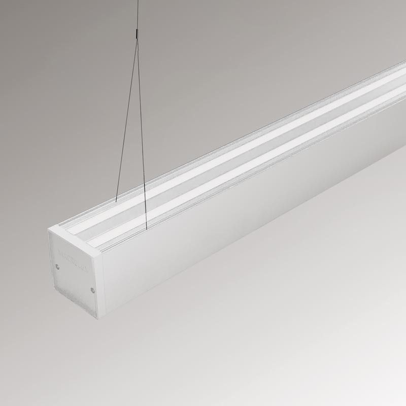 Suspended luminaire with different optics to adapt to any environment and guarantee excellent visual comfort. High efficiency 93%.