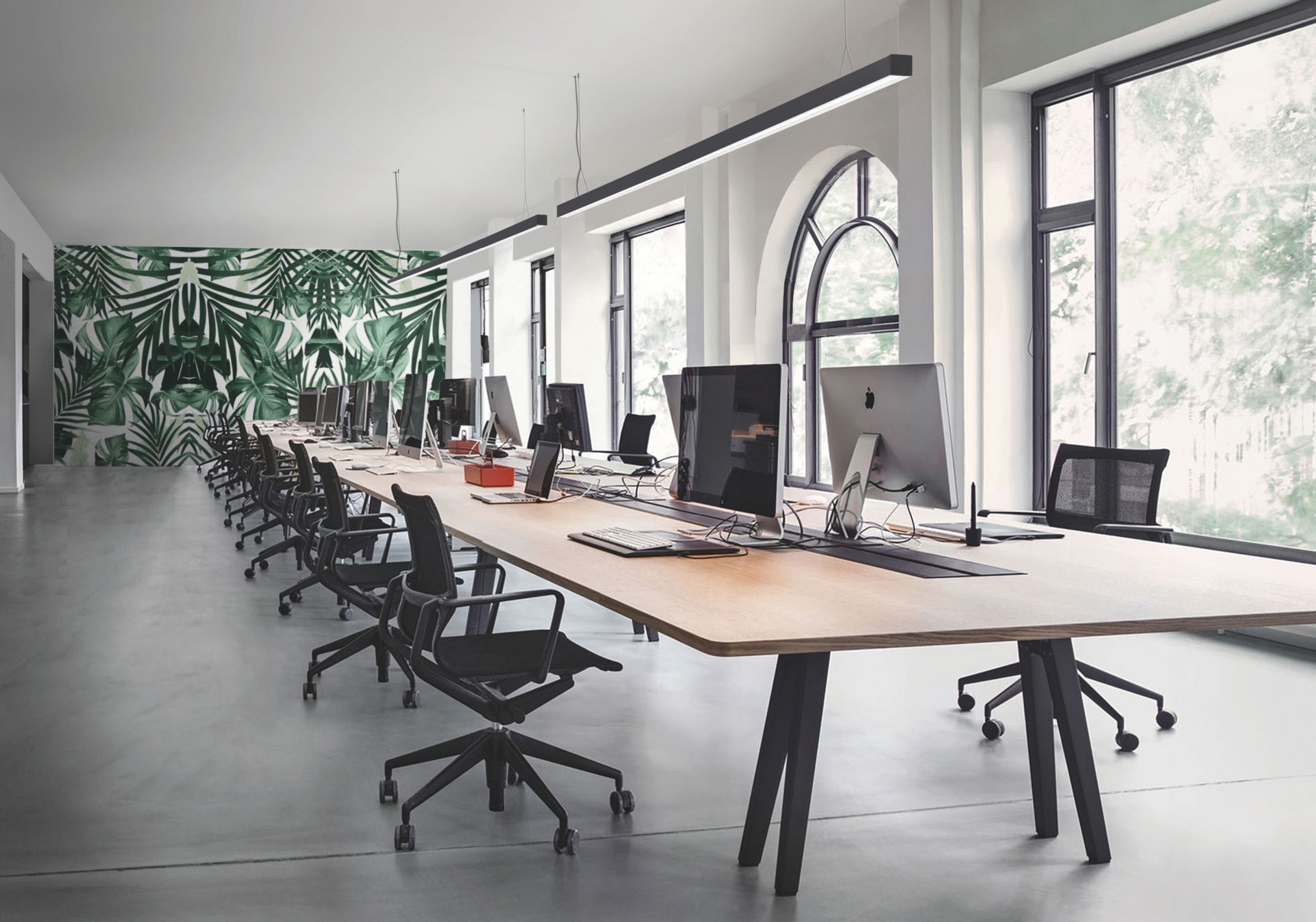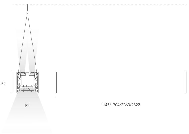 Suspended luminaire with different optics to adapt to any environment and guarantee excellent visual comfort. High efficiency 93%.