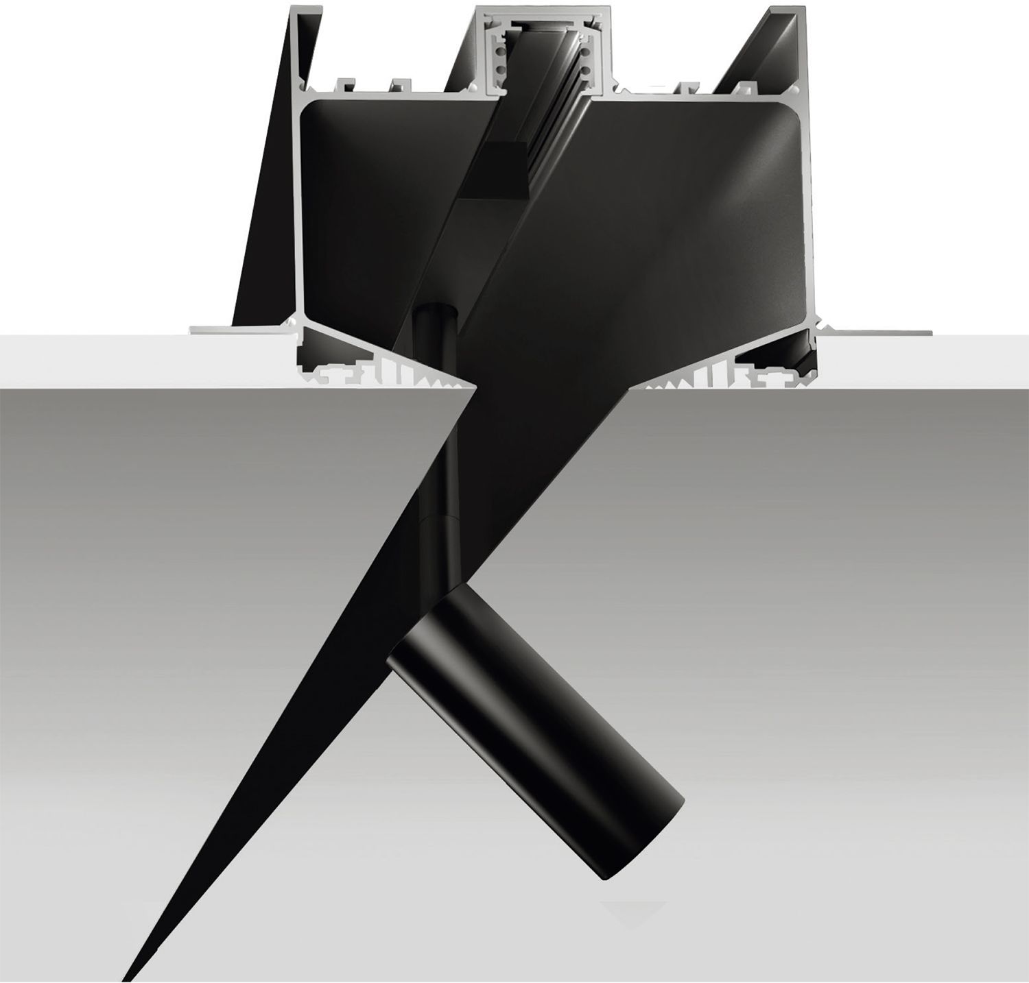 MINI OUT 48V spotlights are designed for recessed mounting within the DARK track. Equipped with mechanic coupling, they make it possible to hook and move the luminaire inside the track, in a simple and safe way without tools.