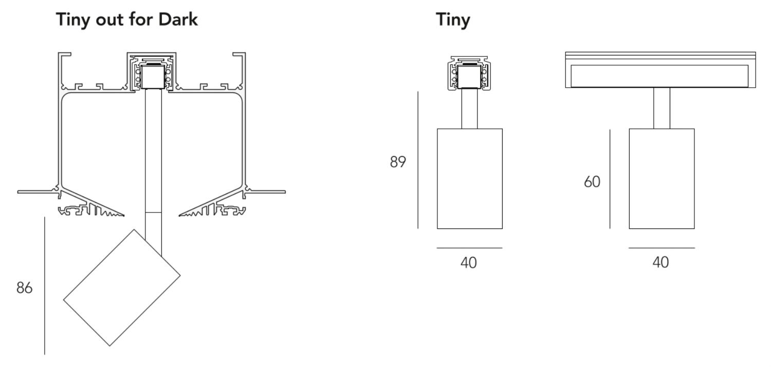 Tiny is designed for installation on the 48v lighting track design. Equipped with mechanic coupling, installation is possible in a simple and safe way without the use of any tool.
