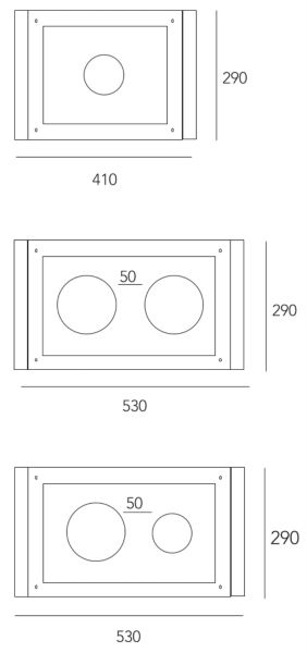 Made from steel sheets and alluminium, can be fitted only on plasterboard false ceilings or walls. The spot lights are fastened through a mechanical system, allowing the user to modify their positions according to project requirements.