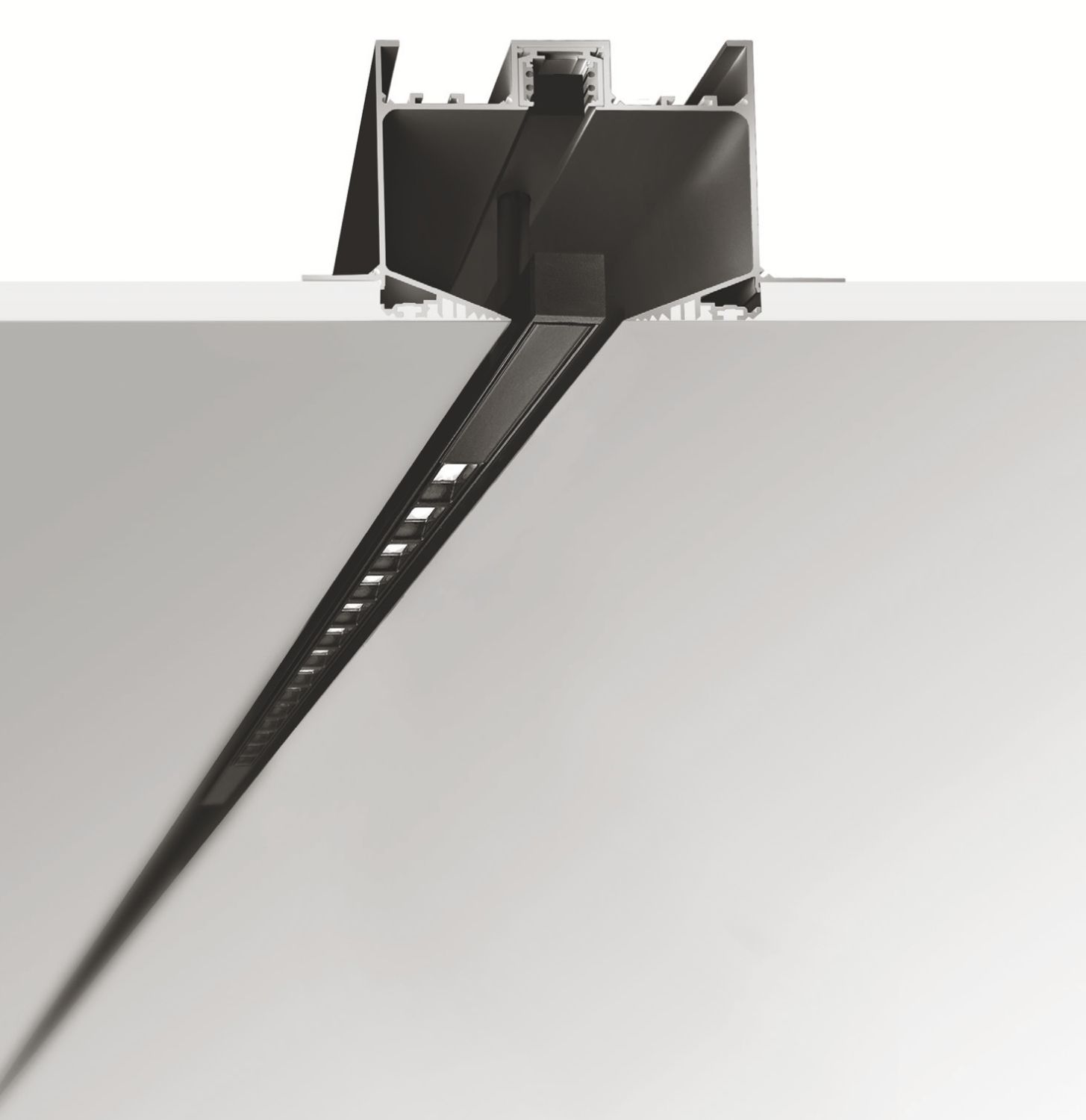 A miniature, stylish luminaire with an integrated 54° lens, providing a linear downlight solution with excellent glare control (UGR <19).